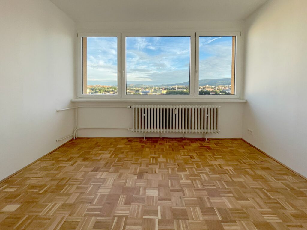 The new spatial layout emphasised promoting the atmosphere of the rooms and preserving their key qualities such as light and views of the surrounding landscape. The through-room layout was removed and the living areas were cleared of original inappropriate features such as lightweight partitions and poor quality built-in wardrobes. The sanitary facilities and kitchens were fitted with features that meet current standards, with an emphasis on creating sufficient storage space, which is often neglected in prefabricated flats. The interior design followed the principles of simplicity, minimalism and lightness.