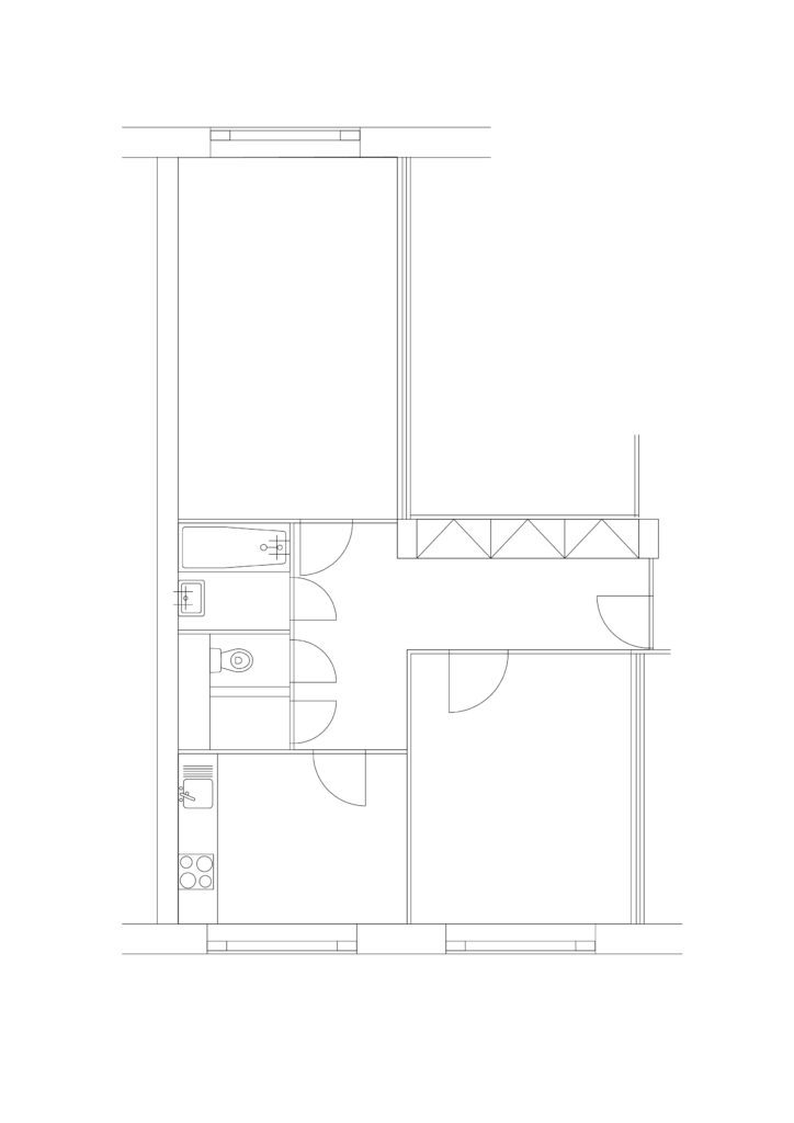 We offer for rent a bright and cozy 2+1 apartment with a total area of 63 m², after complete reconstruction, in a quiet Jakutská street. The apartment is located on the 3rd floor of a house located between two courtyards. Thanks to this, it offers a view of the greenery from all rooms, which underlines its unique peace and pleasant atmosphere.