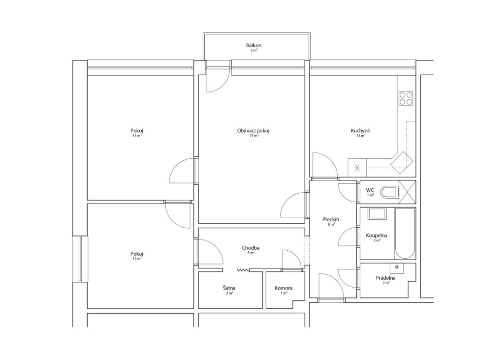 We offer for rent a bright and spacious apartment with a 3+1 layout with a total area of ​​72 m². The apartment is located on the 5th floor of a quiet apartment building, surrounded by mature greenery. The location stands out for its harmonious combination of a quiet environment and easy access to all civic amenities. Ideal housing for a family with children. The apartment has three rooms with parquet floors, a spacious kitchen, bathroom, separate toilet, two storage rooms and a utility room. There is a cellar cubicle. In the immediate vicinity there is a school, kindergarten, public transport stop and shop.