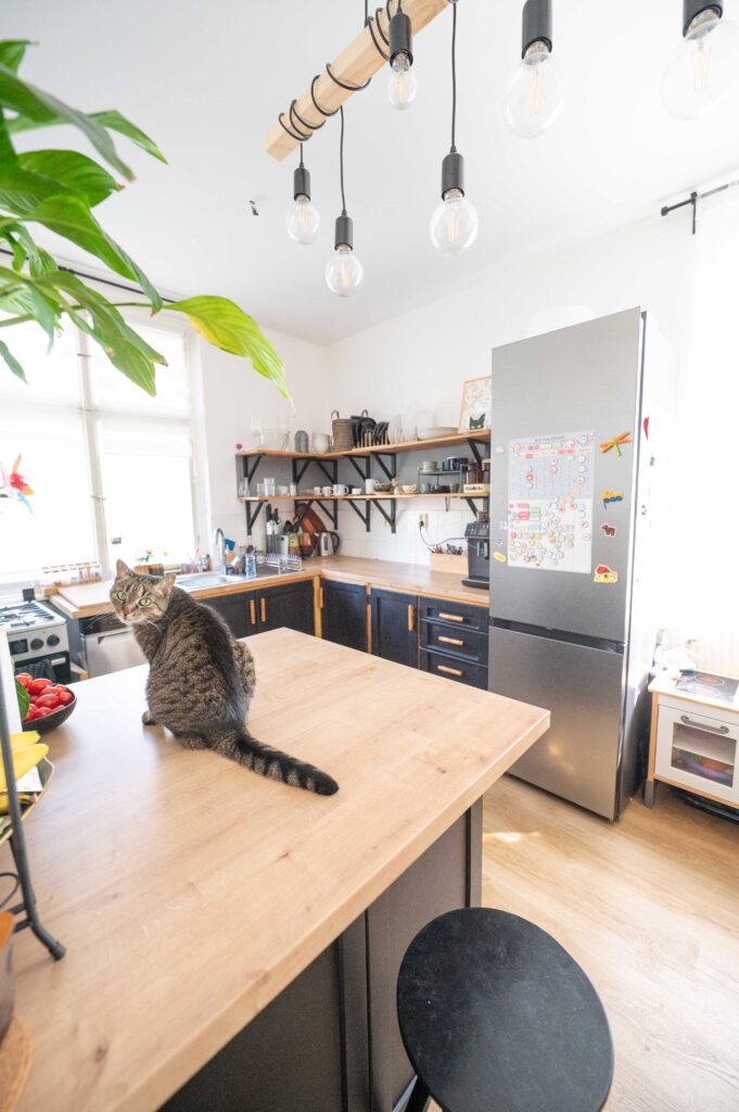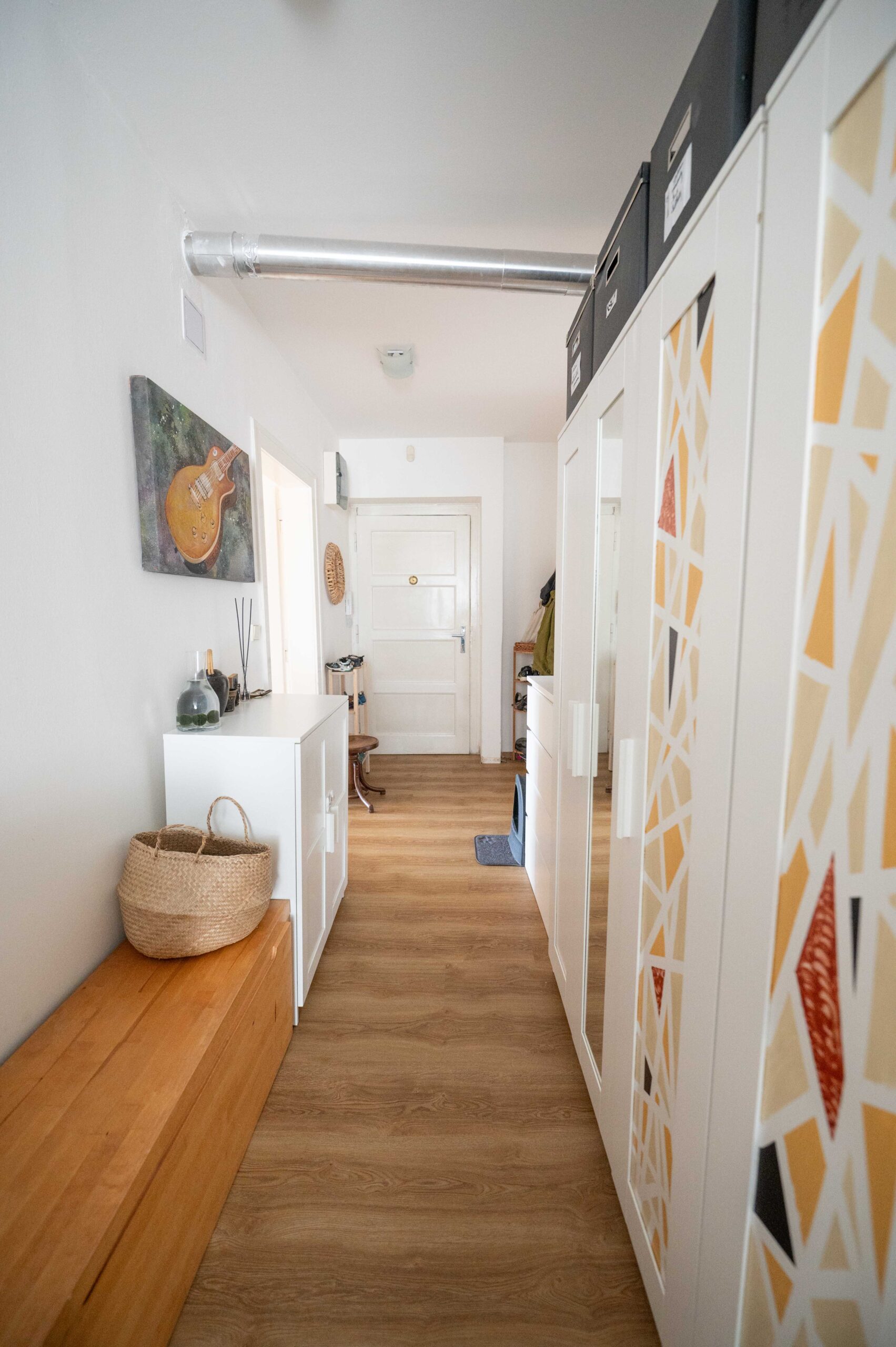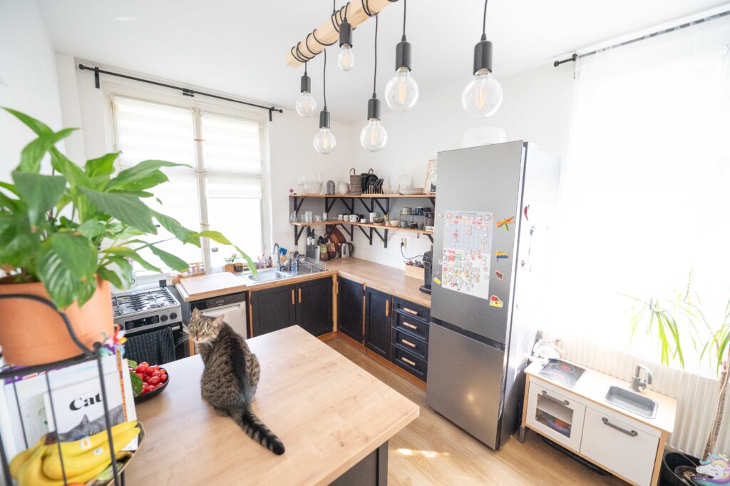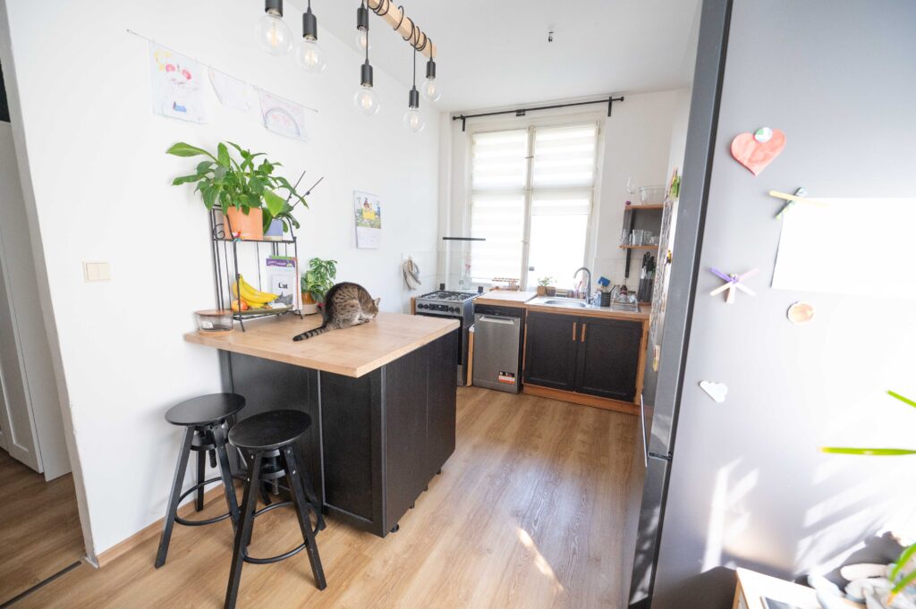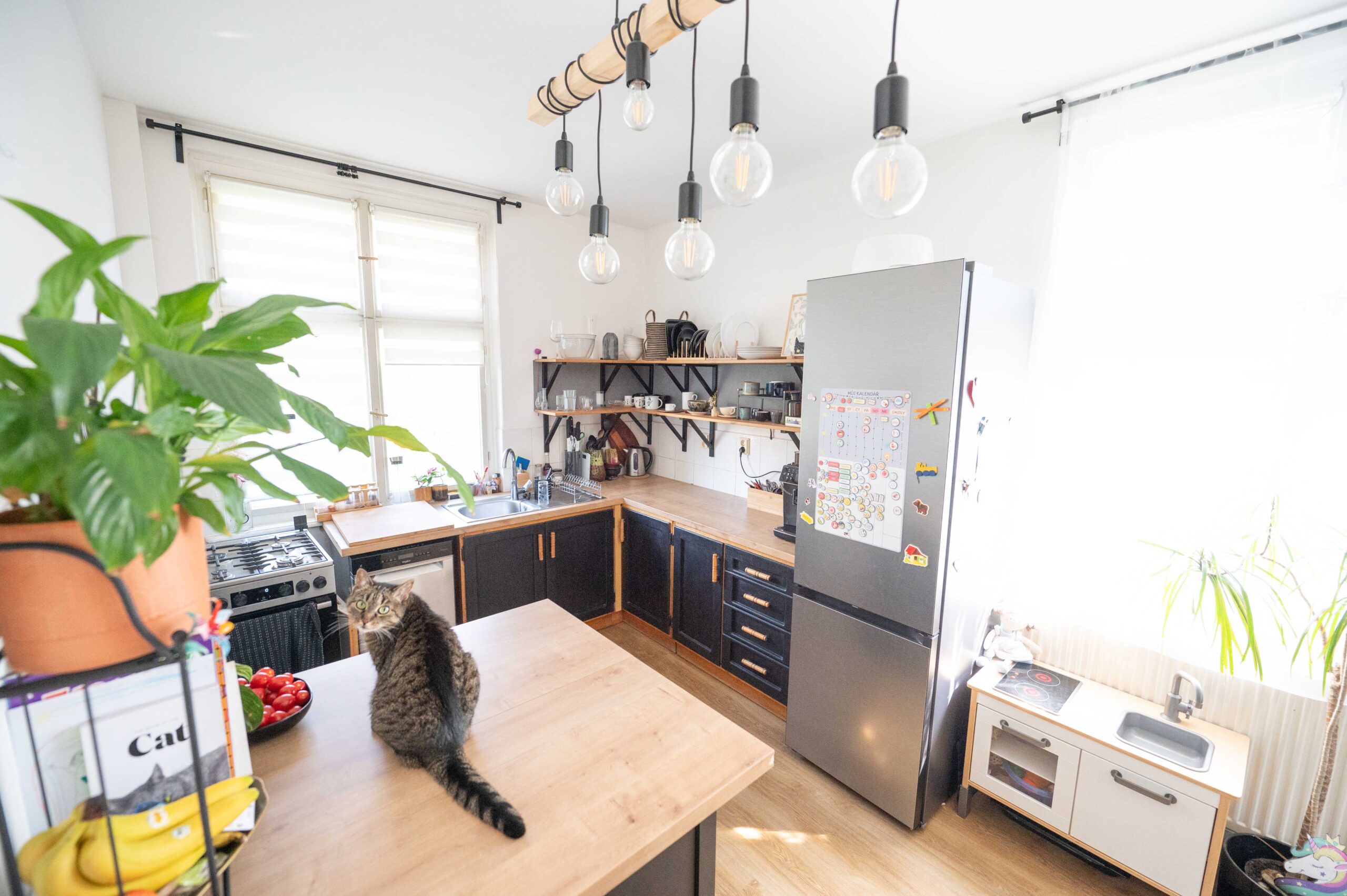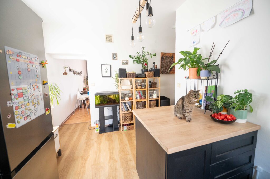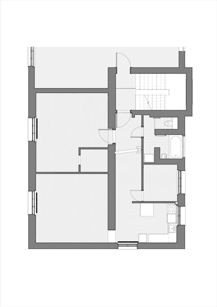 The apartment has three rooms, a spacious kitchen, a bathroom with a toilet. There are two cellars, an attic and a garden, which provide additional storage space and possibilities for use.